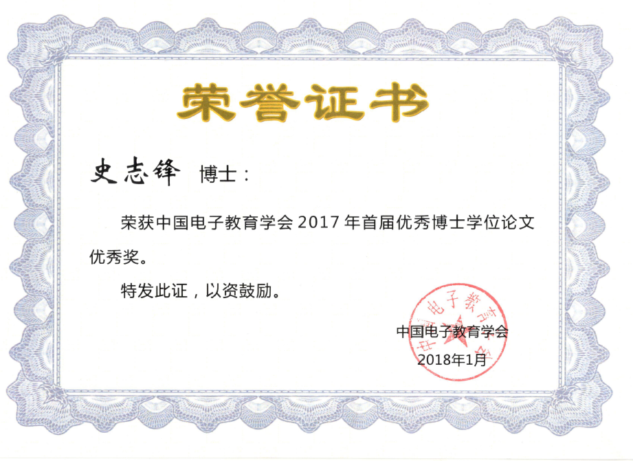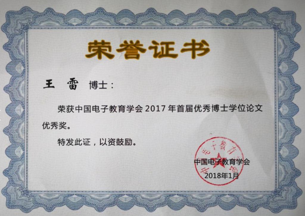 恭喜公司博士毕业生王雷、史志锋在中国电子教育学会首届优秀博士学位论文评选中获得优秀奖,获奖信息如下: