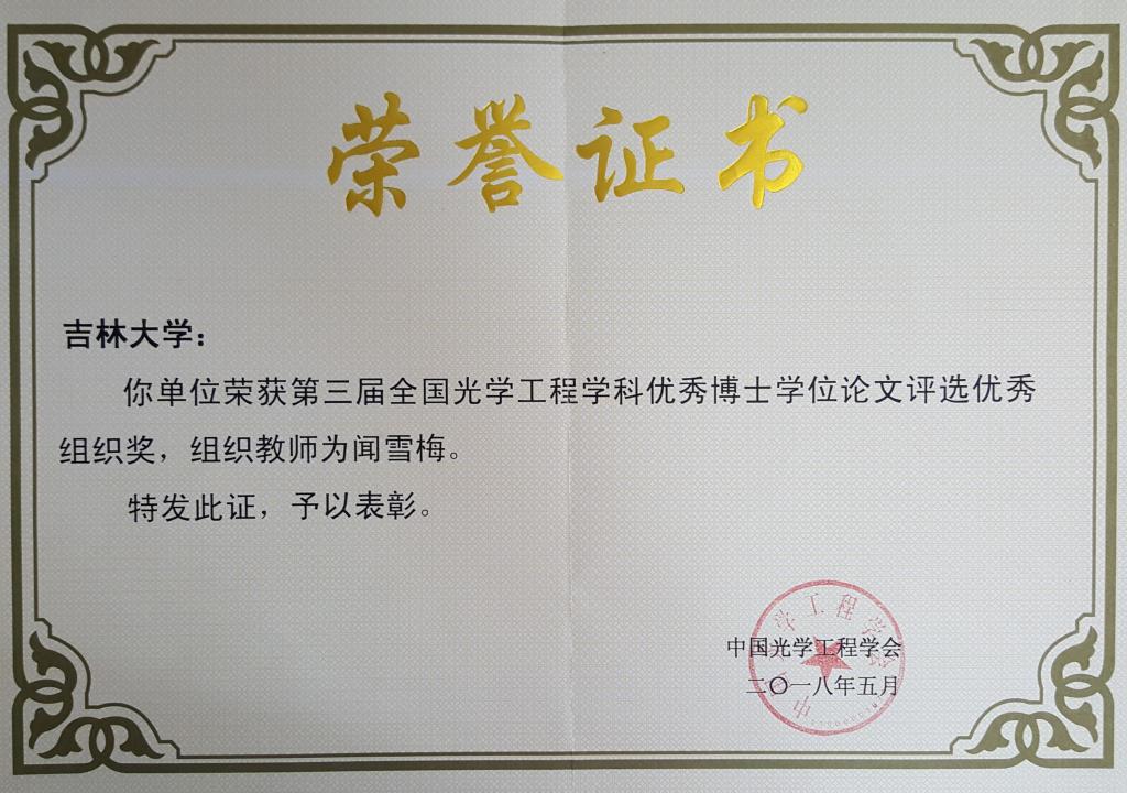同时EMC易倍官网荣获第三届全国光学工程学科优秀博士学位论文评选优秀组织奖。