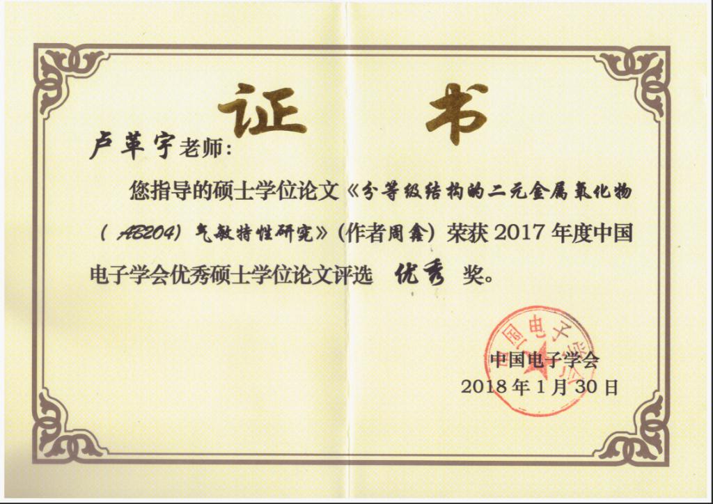 恭喜公司博士毕业生周鑫在2017年度中国电子学会优秀硕士学位论文评选中获得优秀奖,根据《中国电子学会优秀硕士学位论文评选办法》,在97篇博士学位论文中评选出优秀奖10篇,提名奖10篇。