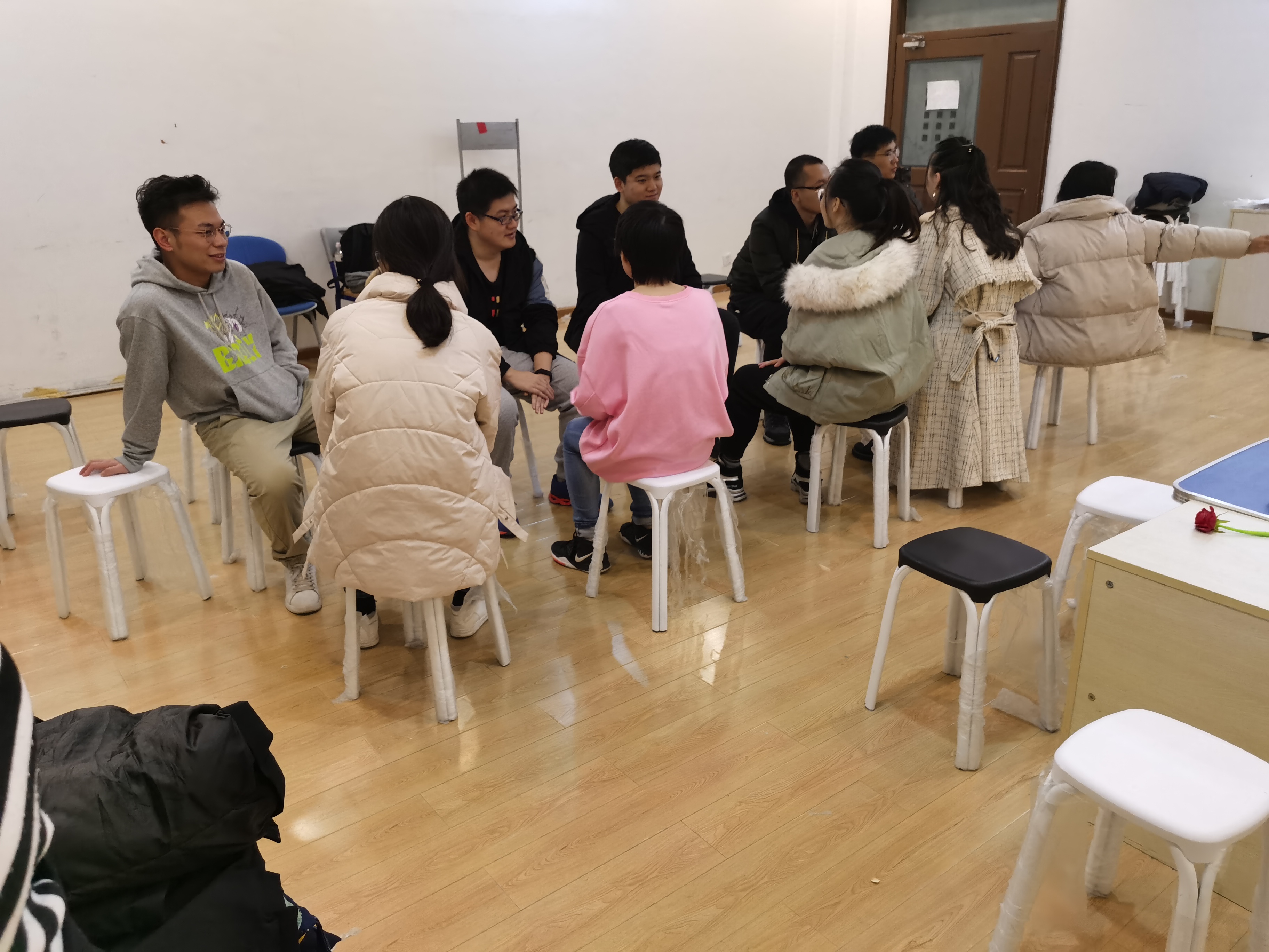 活动刚开始,大家都很害羞,随着几组游戏的进行,大家从开始的紧张与害羞,慢慢变得热情起来。活动的第一个环节是自我介绍环节,活动规则为每组两人面对面进行2分钟的交流,然后交换位置,与其他陌生同学进行自我介绍与交流。在主持人的引导下,大家从开始的尴尬中解脱出来,大家都聊的十分开心,往往时间到了还不愿意交换位置。