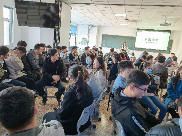 本次活动开始,大家先进行了一个简单快速的分组,在每组的同学们简短的自我介绍相互认识之后正式开始。活动主要包括“歌曲接龙”、“团队协作”等游戏环节,“歌曲接龙”又分成必答环节和抢答环节,在游戏的过程中,大家从陌生到熟悉,从羞于表达到放飞自我。此次活动让同学们在繁忙的科研之余,得到了一次放松的机会。最后,所有新生完成了心理测评,团体心理辅导活动在同学们欢乐、融洽的氛围中落下帷幕。
