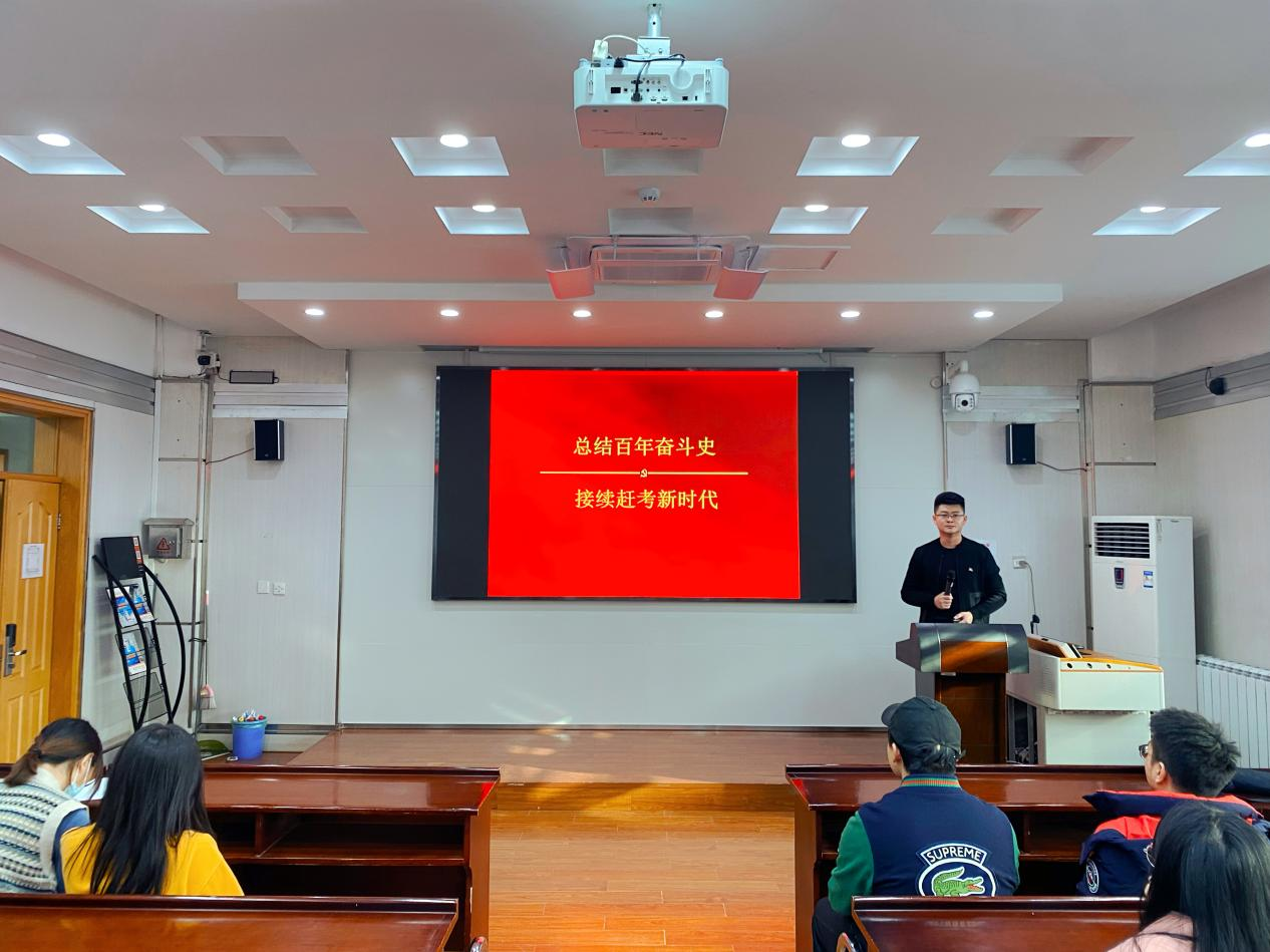 庄宇博士围绕党的百年奋斗史中的三次历史决议为核心内容,从其对应历史时期的社会背景切入,结合历史事件,强调三次历史决议在政治、军事、组织、思想上的重要意义。其中1945年党的六届七中全会通过的《关于若干历史问题的决议》是在争取抗战胜利的关头作出的,将马列主义的普遍真理与中国的具体相结合,也标志着毛泽东思想的形成;1981年党的十一届六中全会通过的《关于建国以来党的若干历史问题的决议》是在改革开放的浪潮下进行的科学总结,为社会主义建设提供了根本保证;2021年党的十九届六中全会通过的《中共中央关于党的百年奋斗重大成就和历史经验的决议》回顾过去,展望未来。全面总结了党的百年奋斗重大成就与历史经验,是以史为鉴、开创未来、实现中华民族伟大复兴的行动指南。最后庄宇博士以十九届六中全会的号召作为总结,激励同学们传承红色精神,埋头苦干、勇毅前行,为实现第二个百年奋斗目标、实现中华民族伟大复兴的中国梦而不懈奋斗。