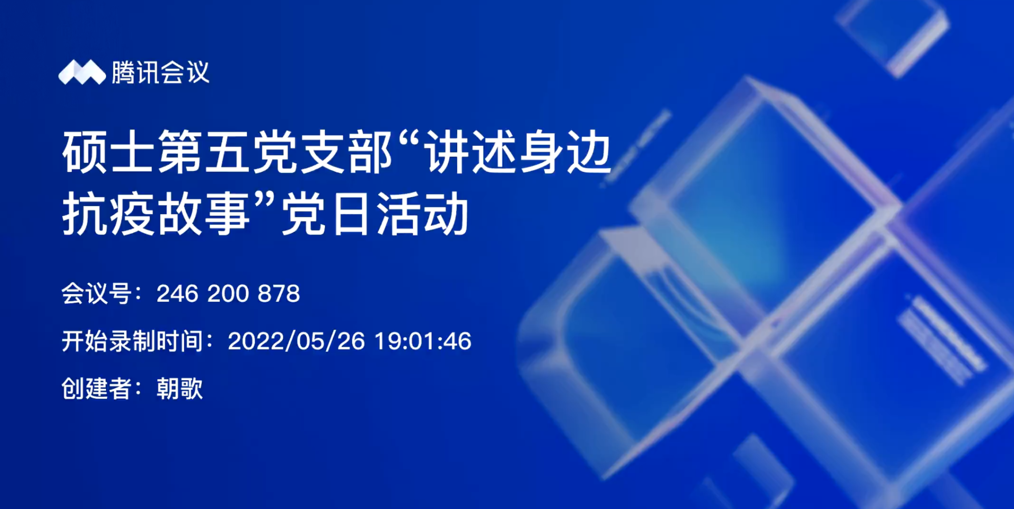 为进一步弘扬伟大抗疫精神,大力宣传身边党员和师生在疫情防控工作中的先进事迹、感人故事与崇高精神,增强广大党员归属感、荣誉感和使命感,2022年5月26日晚上19时,EMC易倍硕士第五党支部线上开展了“讲述身边抗疫故事”主题党日活动。活动邀请了副经理沈亮老师参加,党支部所有成员准时到会,会议由硕士第五党支部书记周朝歌主持。