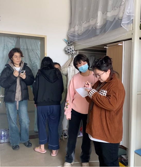 查寝过程中,闻雪梅询问了同学们近期的生活情况;仔细排查了可能存在的安全隐患,提醒寝室用电安全,严禁使用违章电器;并对安全和卫生良好的寝室给予表扬和颁发流动红旗;叮嘱同学们在当下甲流和诺如病毒盛行的时期,要注意自我管理和个人防护。此外,闻雪梅还与同学们就如何创建文明宿舍进行探讨,同学们也提出个人想法和见解。研究生会对每个寝室以及每位同学,在安全用电和卫生环境两方面进行检查和打分,检查结果良好。