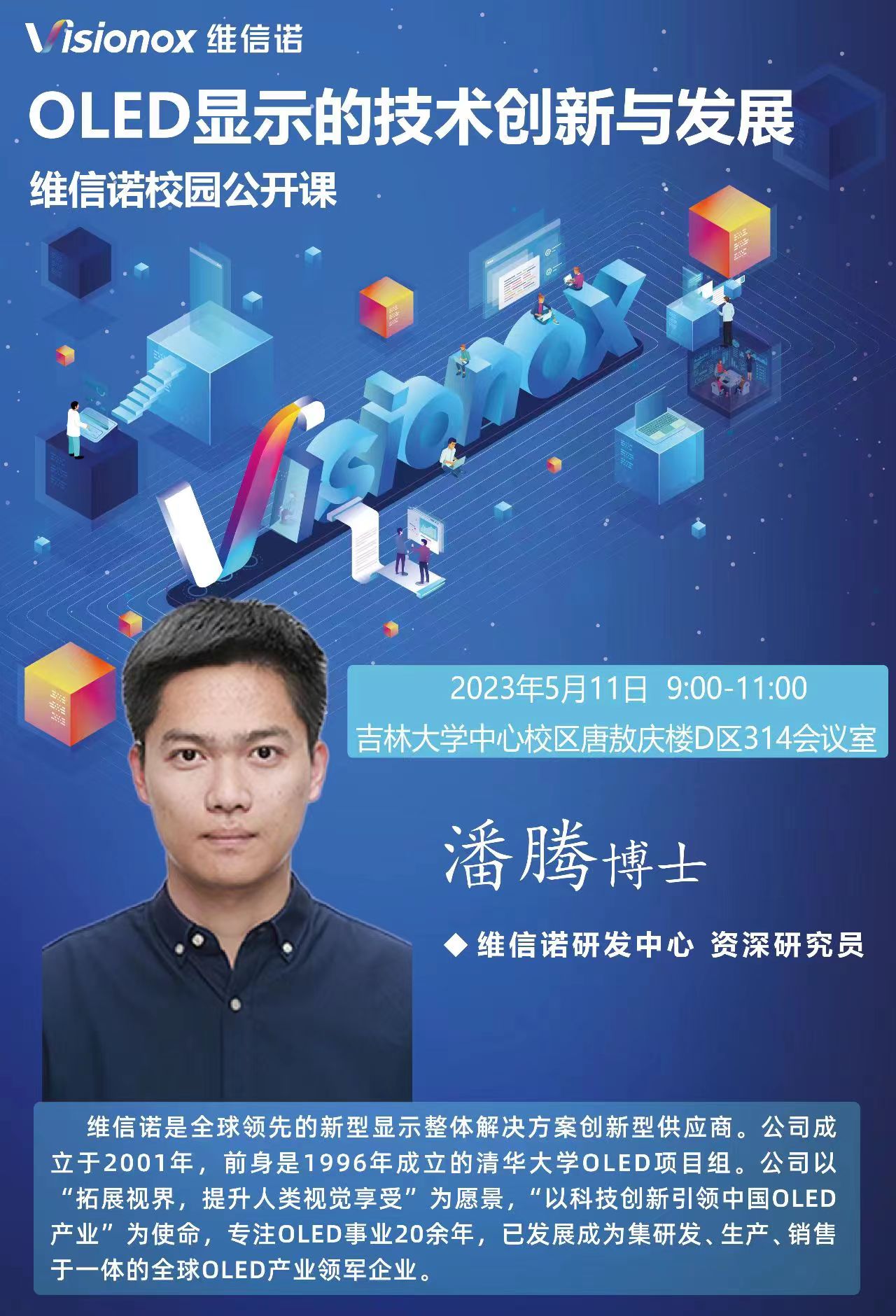 嘉宾介绍:潘腾,男,博士,2013年就读EMC易倍本科,于2022年6月博士研究生毕业。2022年7月加入维信诺研发中心,主要在AMOLED领域从事阵列和OLED的相关工作。