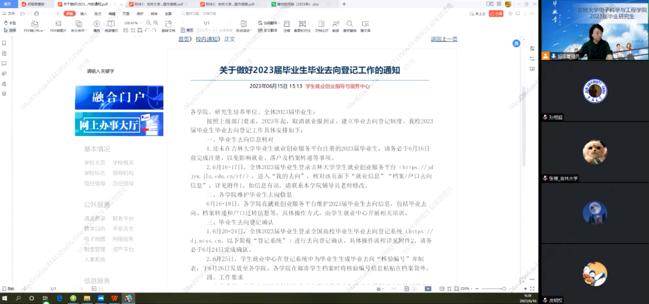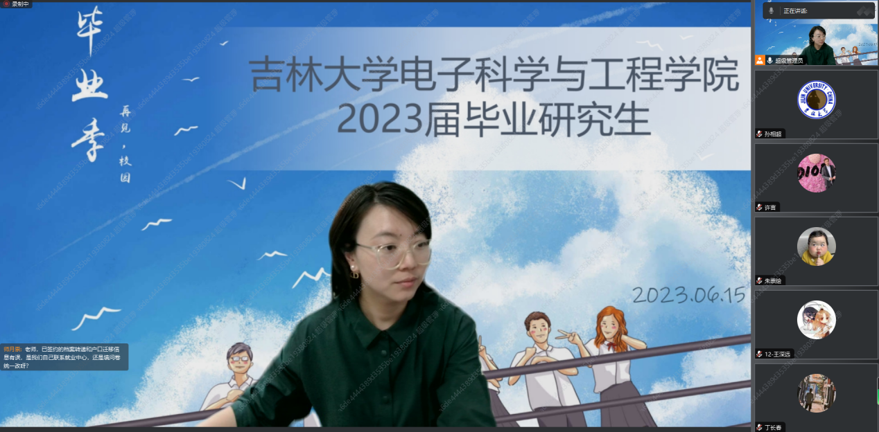 为落实公司相关要求,做好毕业研究生去向登记,方便毕业生准确掌握离校事宜,EMC易倍于6月16日以腾讯会议线上形式召开2023届毕业研究生年级大会,研究生辅导员闻雪梅主讲,全体2023届毕业研究生参会。