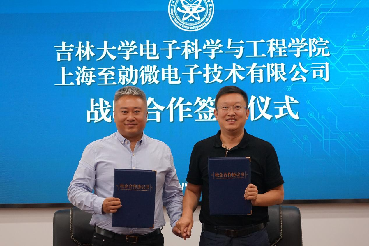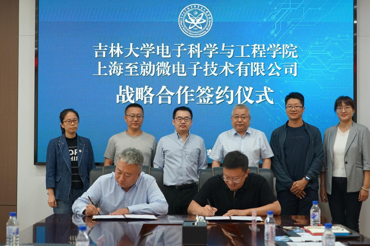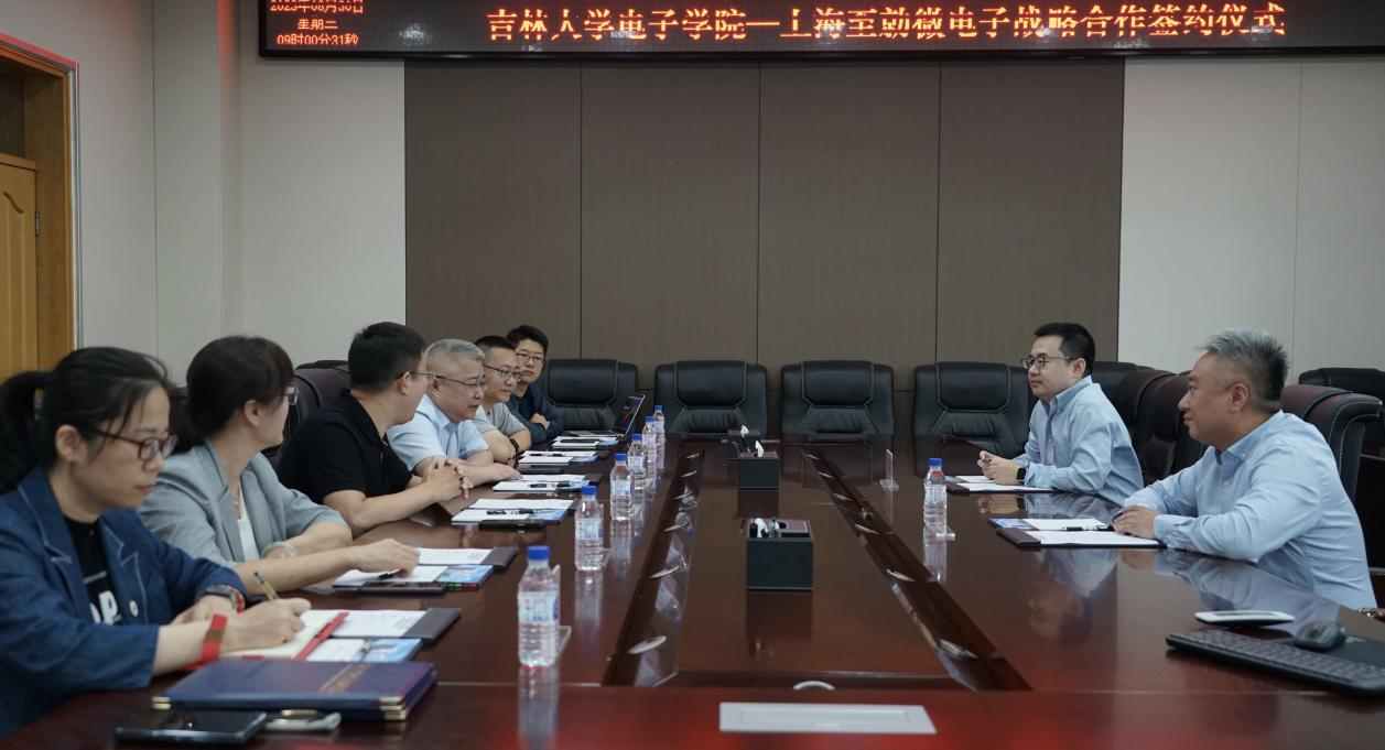 首先,沈亮代表公司对上海至勍微电子相关领导的到来表示热烈欢迎,并简要介绍了公司的历史沿革、研究方向、团队团队、取得成果等方面内容;随后,上海至勍微电子董事长文鼎童从公司发展历程、行业与市场、产品与技术、发展战略等四个方面进行了详细介绍;之后,双方就合作模式、研究领域以及未来合作规划进行了深入交流。最后,沈亮与上海至勍微电子代表张杰群郑重签署合作协议。