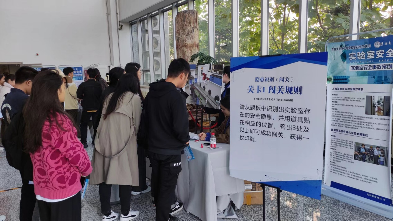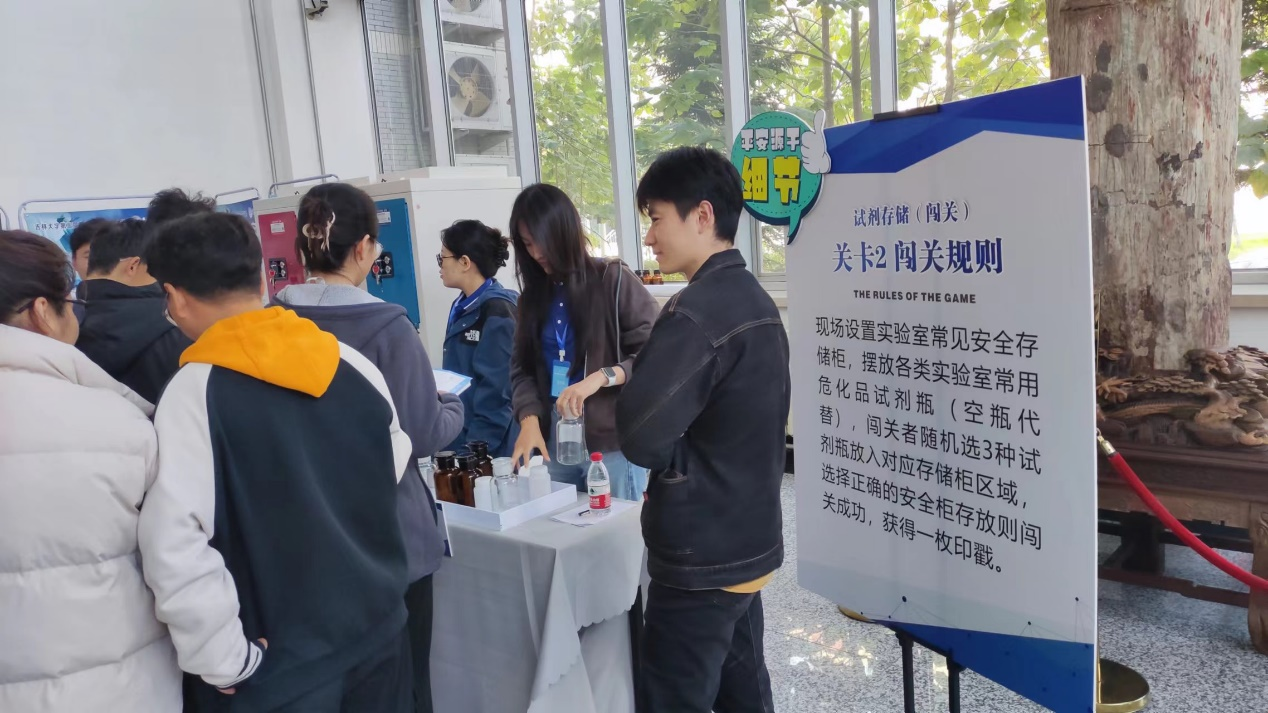 同学们通过图文并茂的展板、真实生动的视频以及近年来发生的实验室安全典型事故案例,全面、深入地学习了实验室安全的重要性以及常见的安全隐患和应对方法。在实验室安全闯关环节中同学们对隐患识别、试剂储存、灭火器选择和应急处置的相关知识进行了学习,并顺利完成闯关,在娱乐中深化了解实验室安全规范,同学们纷纷表示要严格遵守实验室规章制度,杜绝实验室安全事故的发生,通过参与这次活动,不仅增强了自己的实验室安全意识,也提升了实践操作能力,为个人开启科研生活奠定了坚实的基础。
