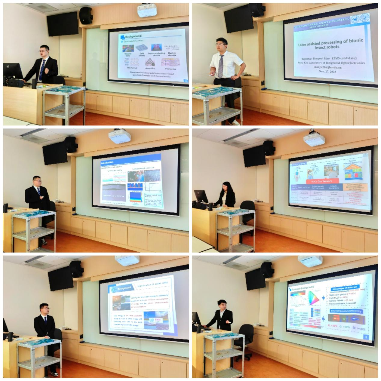 抵达首日,公司师生应邀与新加坡国立大学刘小刚教授课题组共同开展国际学术交流坊,进行学术交流活动。每位博士研究生做了全英文学术报告,分享了自己科研成果,在场师生针对报告内容中的各类问题进行了深入探讨,现场学术氛围浓厚。