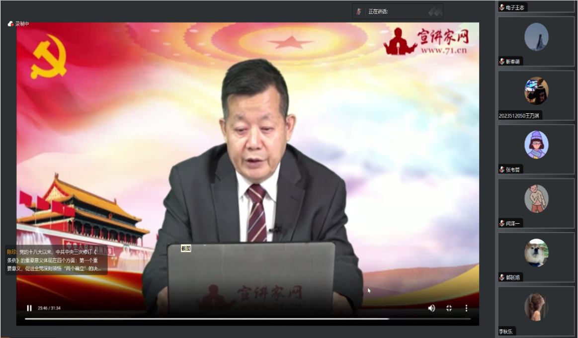 随后,支部全体党员一起观看了中共中央党校任进教授对《中国共产党纪律处分条例》的解读视频。他深入浅出地讲解了违反政治纪律、组织纪律、廉洁纪律、群众纪律、工作纪律和生活纪律的行为表现及相应的处分规定。党员们认真聆听,展现出浓厚的学习兴趣和踏实的学习态度。