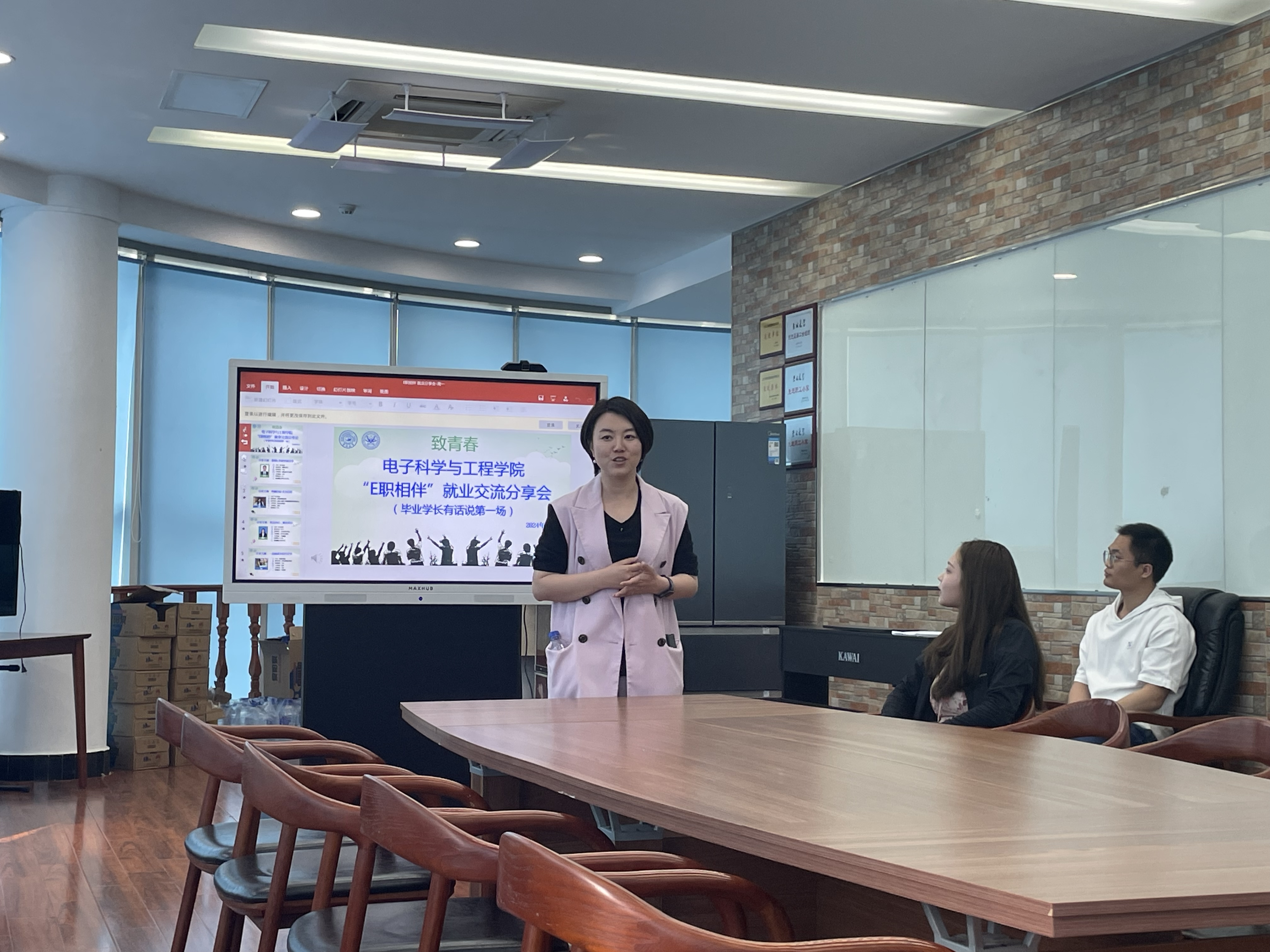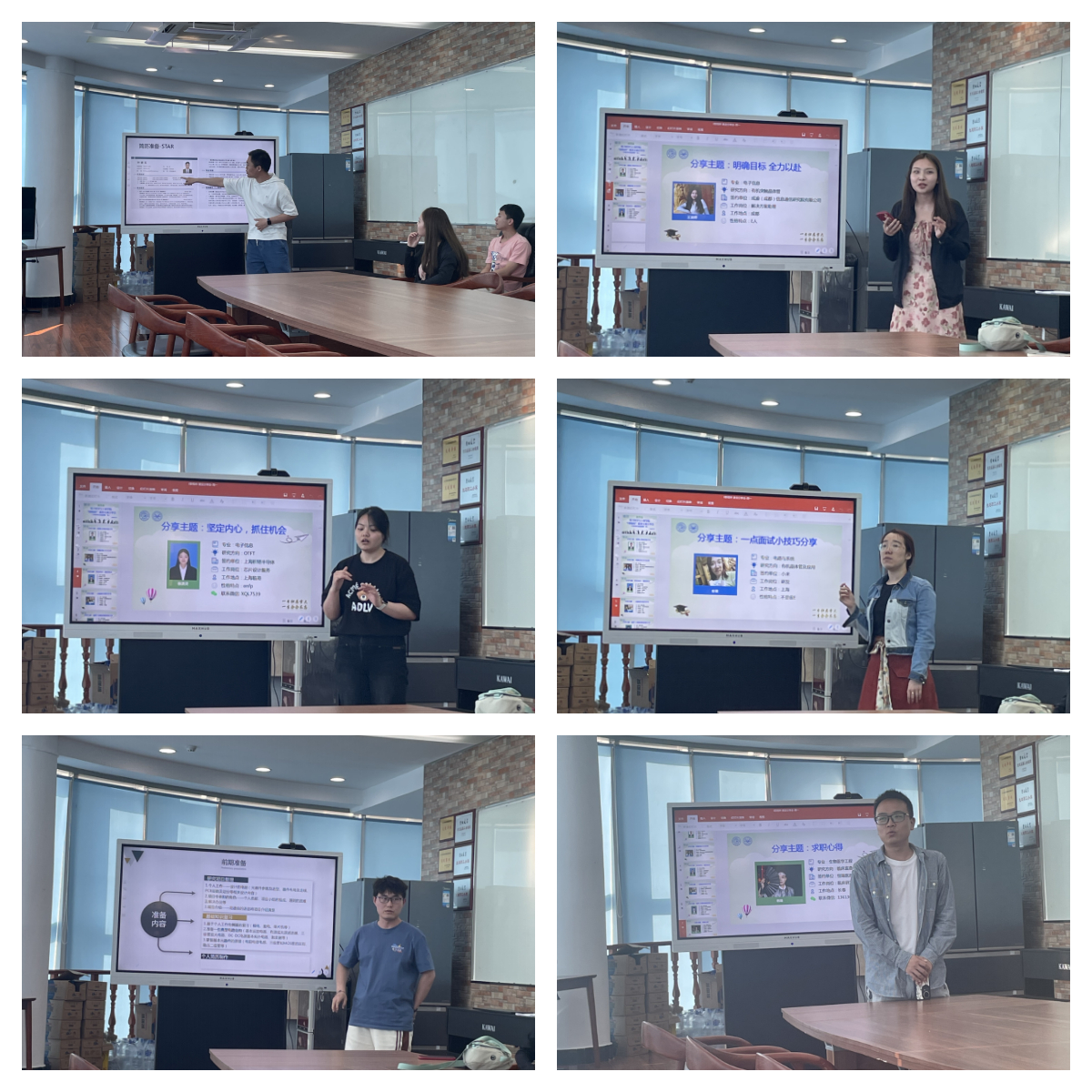 叶锦文同学以“模拟ic求职经验”为主题,围绕“简历”、“笔试”、“面试”以及“offer的选择”等方面进行了阐述,并分享了笔试和面试中的心得与技巧;王渝娉同学以“明确目标,全力以赴”为主题,强调了求职前明确个人目标的重要性,并为同学们提供了职业规划建议;徐清灵同学以“坚定内心,抓住机会”为主题,她以自身经验为例,讲述了在“深造”、“考公”以及“求职”三条道路上的选择过程;宿敬同学以“一点面试小技巧”为主题,介绍了自己的面试经历,并分享了许多面试中容易被忽视的细节;朱冰洁同学以“硬件工程师求职经验”为主题,详细描述了自己从前期准备到笔试面试,再到薪资与工作环境比较的完整求职过程,并与同学们进行了深入交流;杨瑞同学以“求职心得”为主题,他站在自己所学专业的角度,和大家分享了求职心得。