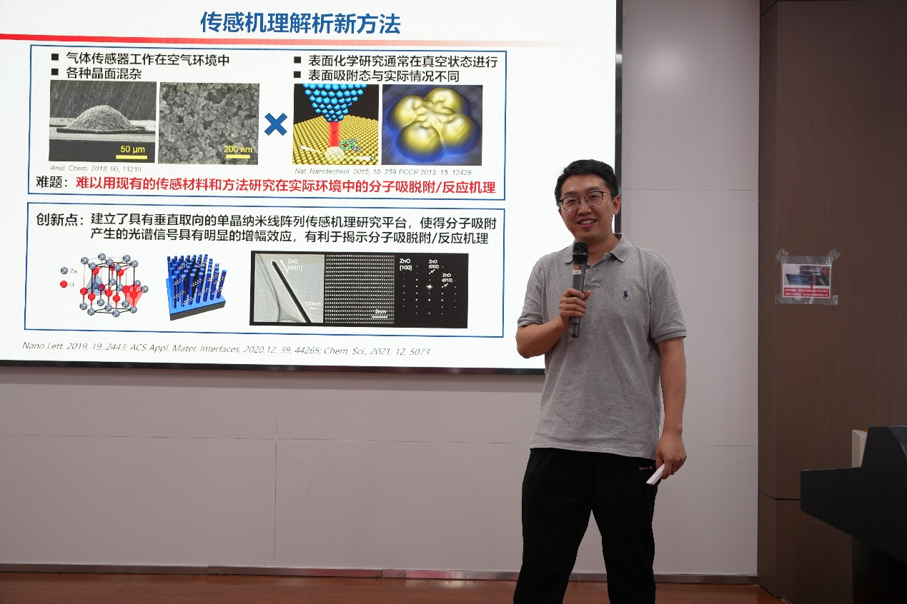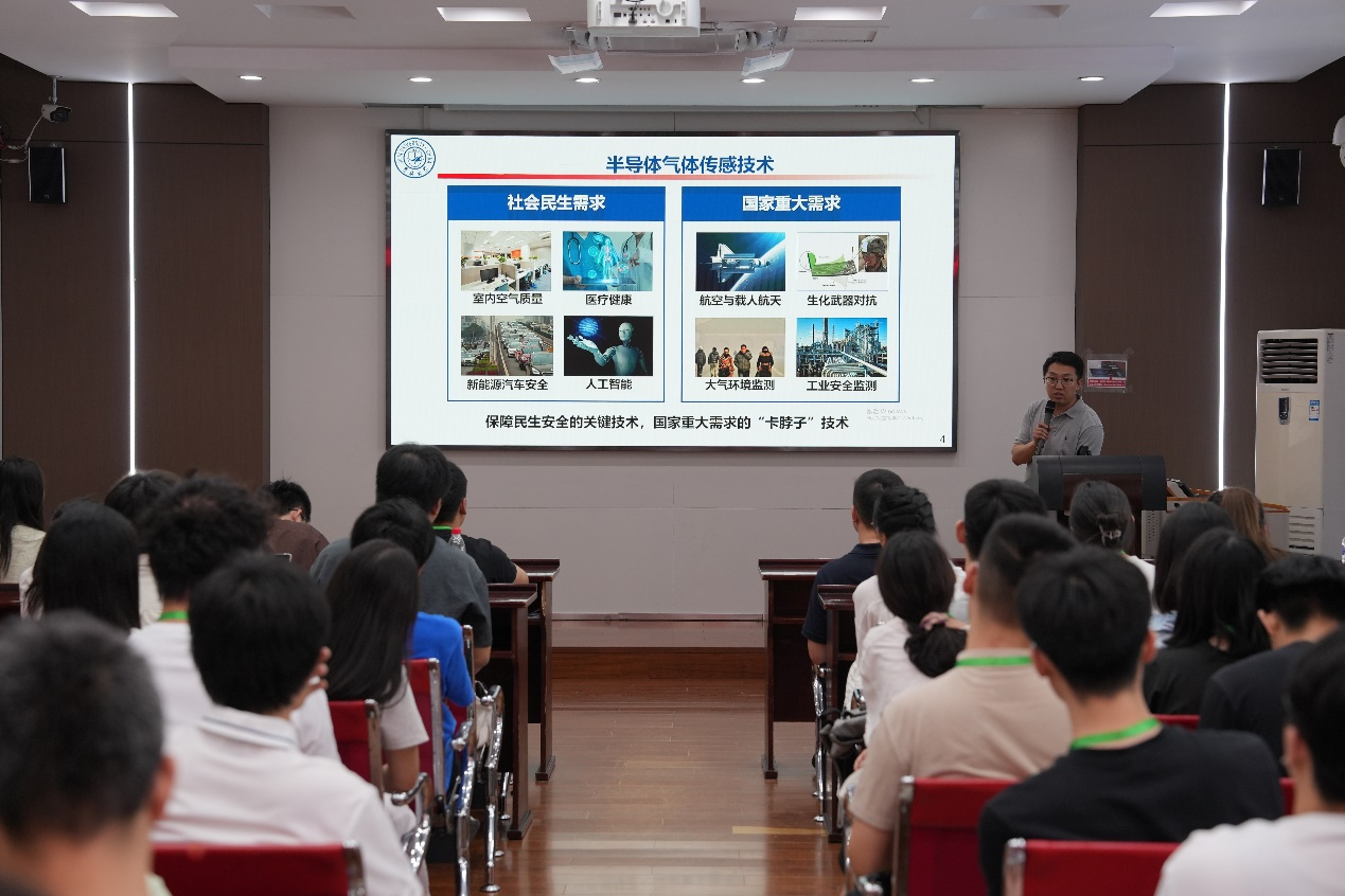 王琛以“半导体气体传感器:从基础研究到实际应用”为题,阐述了半导体氧化物气体传感器在安全监控、医疗诊断、环境监测等领域的重要应用价值,详细介绍了科研团队围绕“气体分子与传感材料相互作用机制和性能调控”这一关键科学问题所作的科学研究以及取得的科研成果。同时,结合个人学习与工作经历,王琛鼓励各位营员要努力走向更广阔的平台,拓展个人眼界、思维。