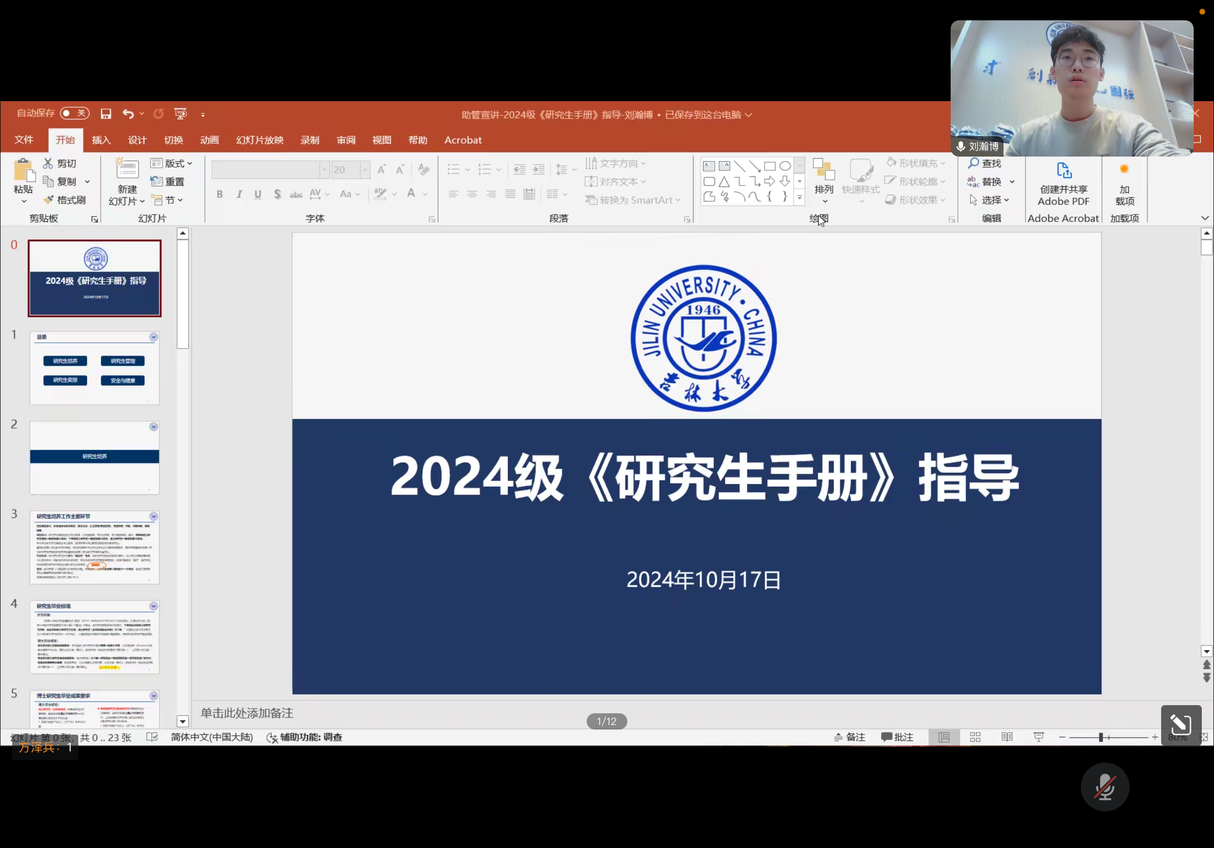 首先,刘瀚博对《研究生手册》要点内容进行了细致讲解,包括研究生的培养、管理、奖惩制度以及安全与健康等方面,提醒新生们明确培养目标并科学规划研究生生活;接着,对公司研究生工作办公室各位老师的分管工作进行了详细介绍;重点讲解了研究生党建工作、公司的医保制度、研究生奖惩制度、校内常用网站和公司的心理健康指导服务等内容,并希望同学们能够更好地获取信息和利用资源,鼓励大家在面对压力时及时寻求帮助。