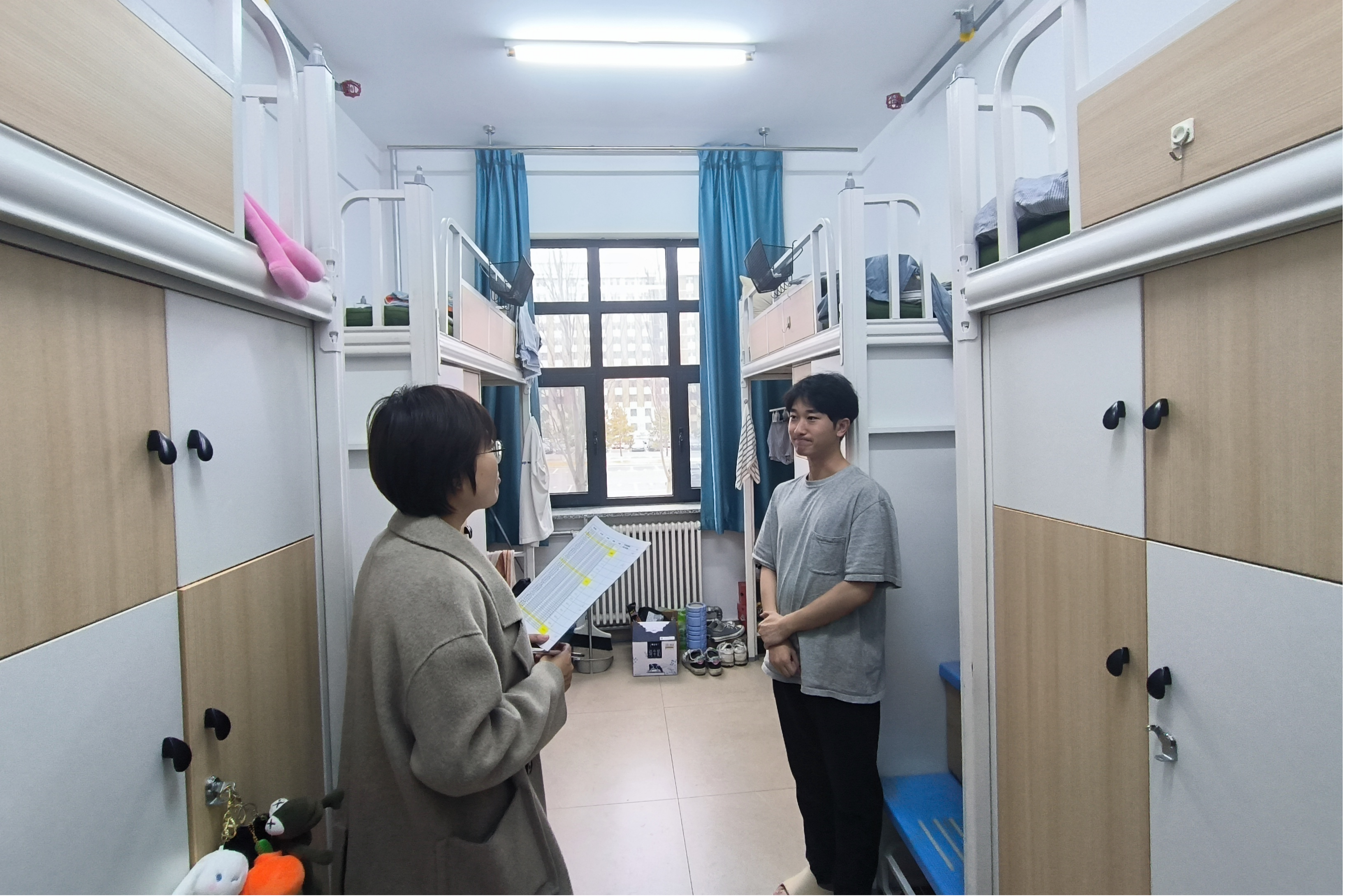 在检查过程中,两位老师询问了同学们的学习生活情况,并就寝室卫生问题进行叮嘱,重点强调了寝室的用电安全,提醒同学们严禁使用违规电器,养成“离室必断电”的良好用电习惯,杜绝危险用电,合理规划用电,提高安全意识,加强自我监督,做到防患于未“燃”。针对检查过程中发现的寝室卫生问题及安全隐患,两位老师对相关同学进行了教育并要求限期整改。