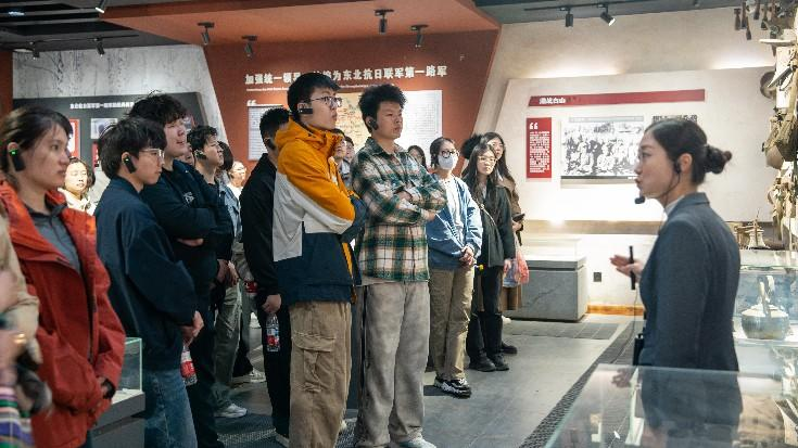 在讲解员的引导下,全体师生步入了东北抗日联军第一路军展览馆。展馆内容丰富,涵盖了第一路军军歌、南满游击队、第一军的成立、中共东满特委组建和东北抗日联军的壮阔历程。以及与日军的经典战役、协同苏军反攻东北到最终夺取抗战胜利,光复东北的伟大历史画卷。通过参观学习,大家深刻感受到抗联将士们为民族独立和人民解放付出的巨大牺牲与不朽精神。