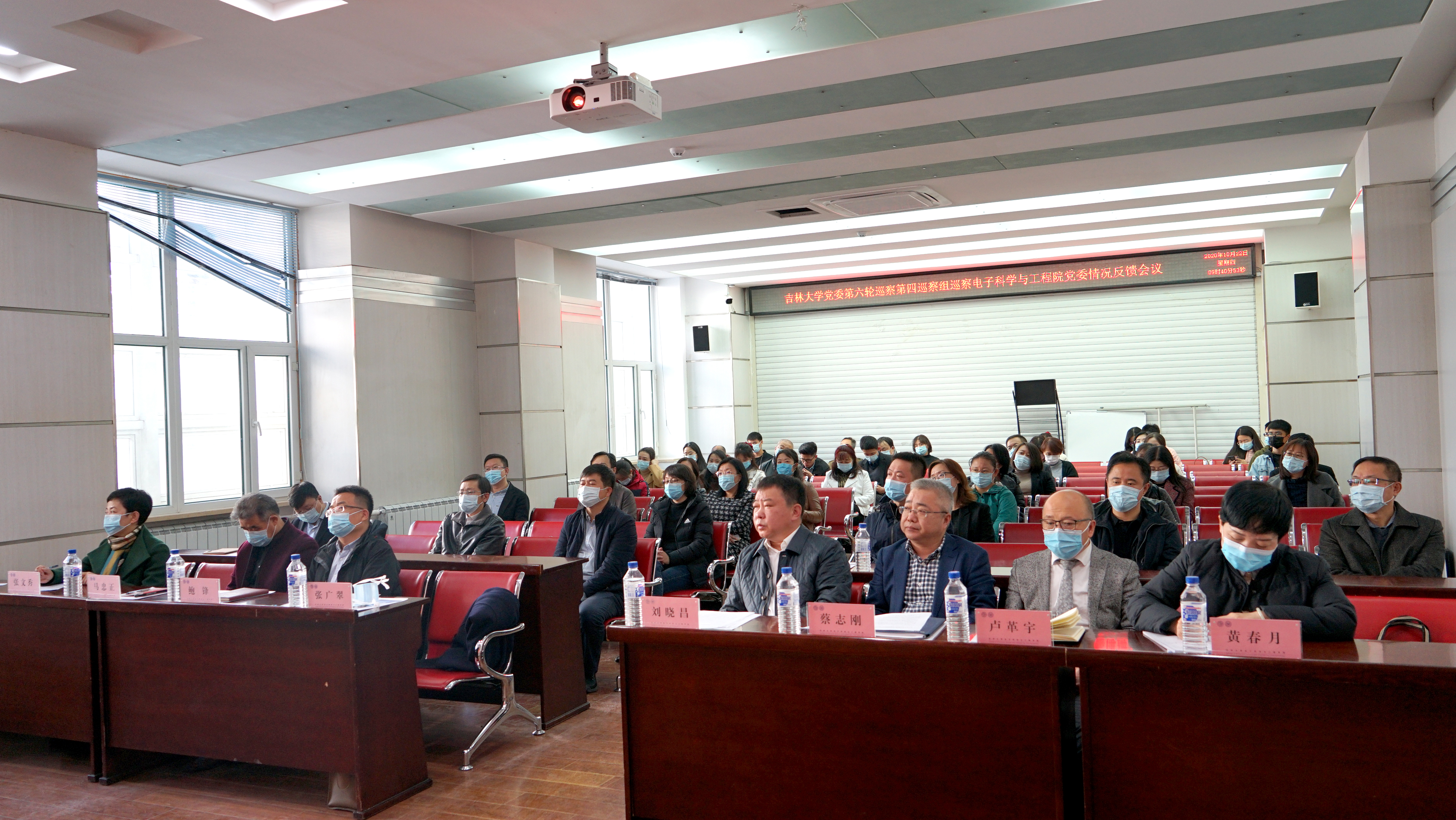根据公司党委关于巡察工作的部署,2020年10月22日9时30分,公司党委第四巡察组向公司党委反馈巡察情况。公司巡察工作领导小组成员刘晓昌、党委第四巡察组组长张广翠及全体成员、公司领导班子全体成员,近三年退出管理岗位的班子成员,党委委员、纪委委员、基层监察员,学术委员会主任、学位评定委员会主任、教学委员会主任,支部书记、系(中心)主任,教职工代表等参加了会议。会议由蔡志刚主持。