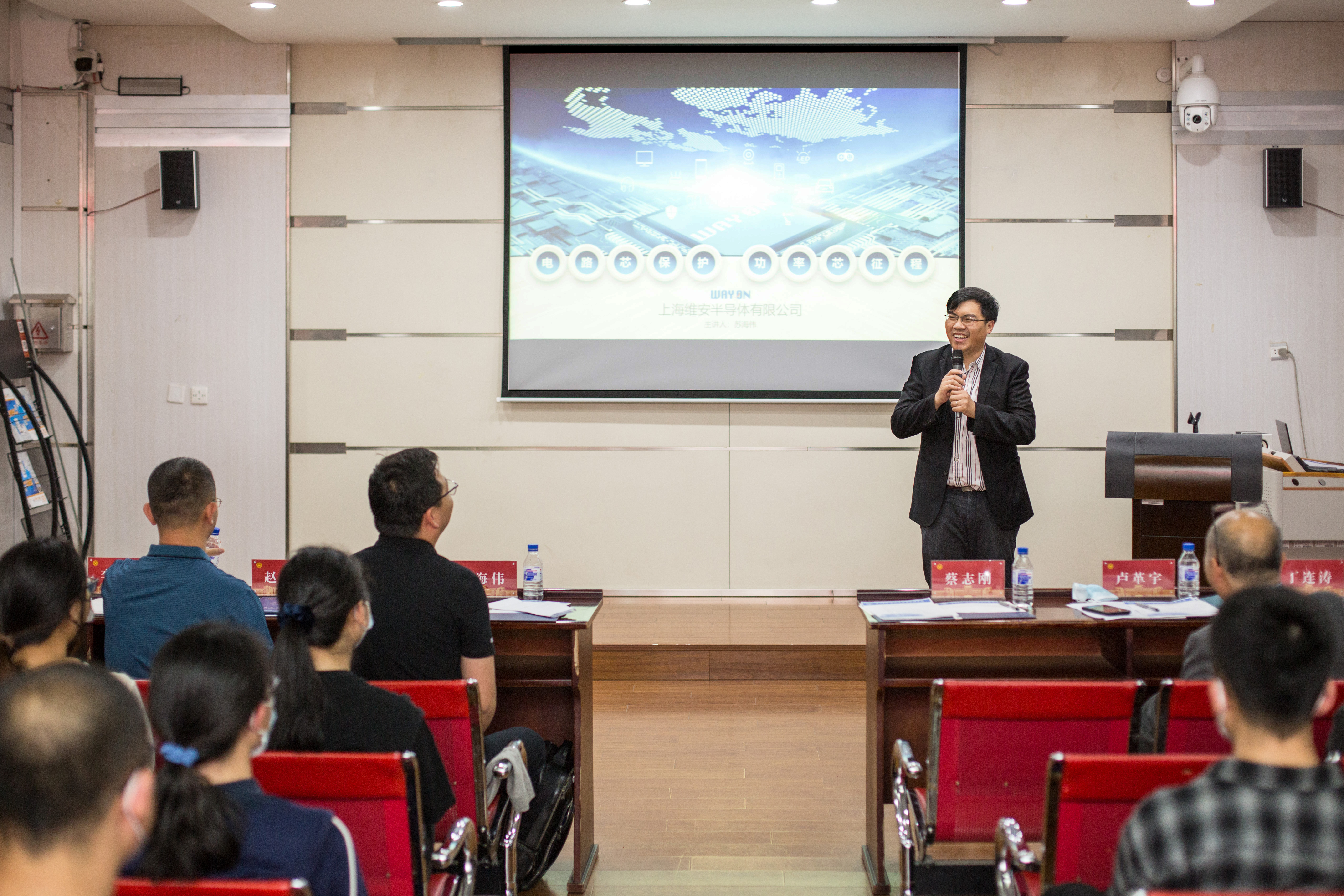 苏海伟以“电路芯保护,功率芯征程”为主题,为员工代表讲解了半导体行业概况及未来发展机遇,围绕关键基础材料与集成电路技术、电子信息领域专业技术服务、智能保护元器件的巨大市场潜力做出专业的讲解和分析。同时,结合上海维安半导体有限公司特色产品及应用领域,讲述了我国半导体企业一直坚持自主研发、科研创新,不断探索,掌握电路保护和功率半导体行业新技术的心路历程。