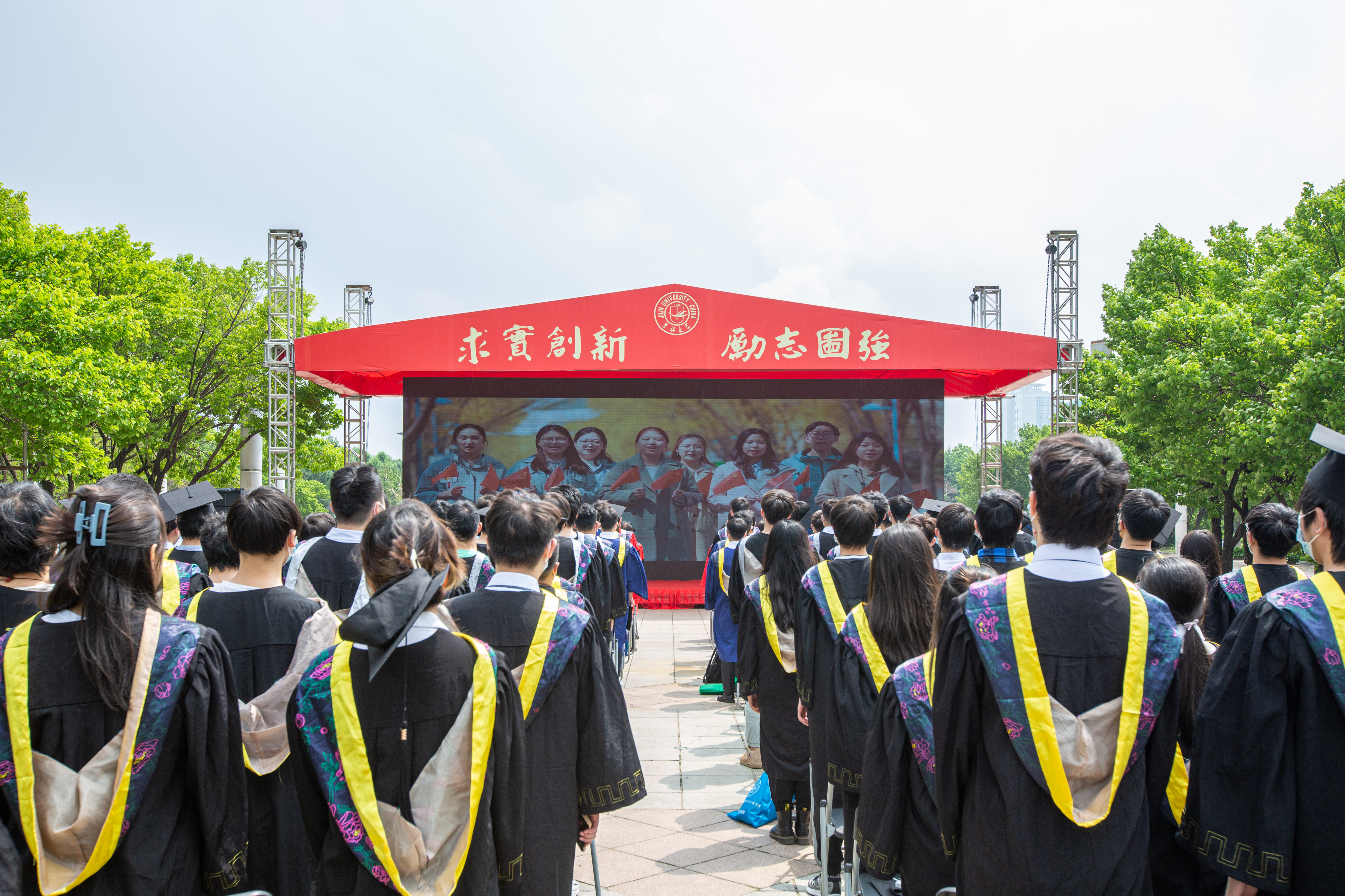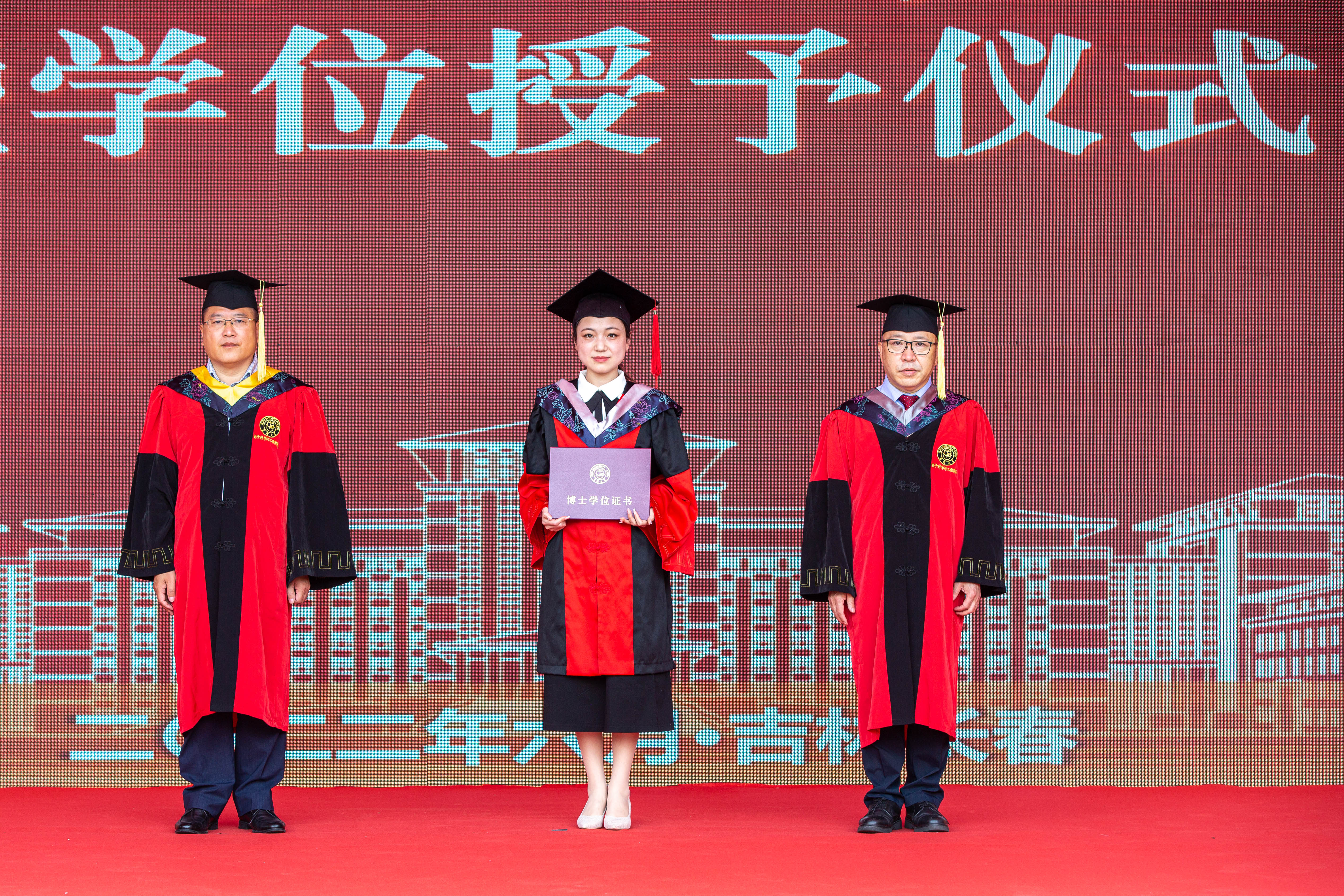 毕业典礼暨学位授予仪式在庄严的国歌声中拉开了序幕。副经理陈占国教授宣读了2022届毕业生学位授予名单。随后,经理、学位评定分委员会主席卢革宇、学位评定分委员会副主席宋宏伟作为主礼教授,为2022届毕业生拨穗正冠,颁发学位证书并合影留念。