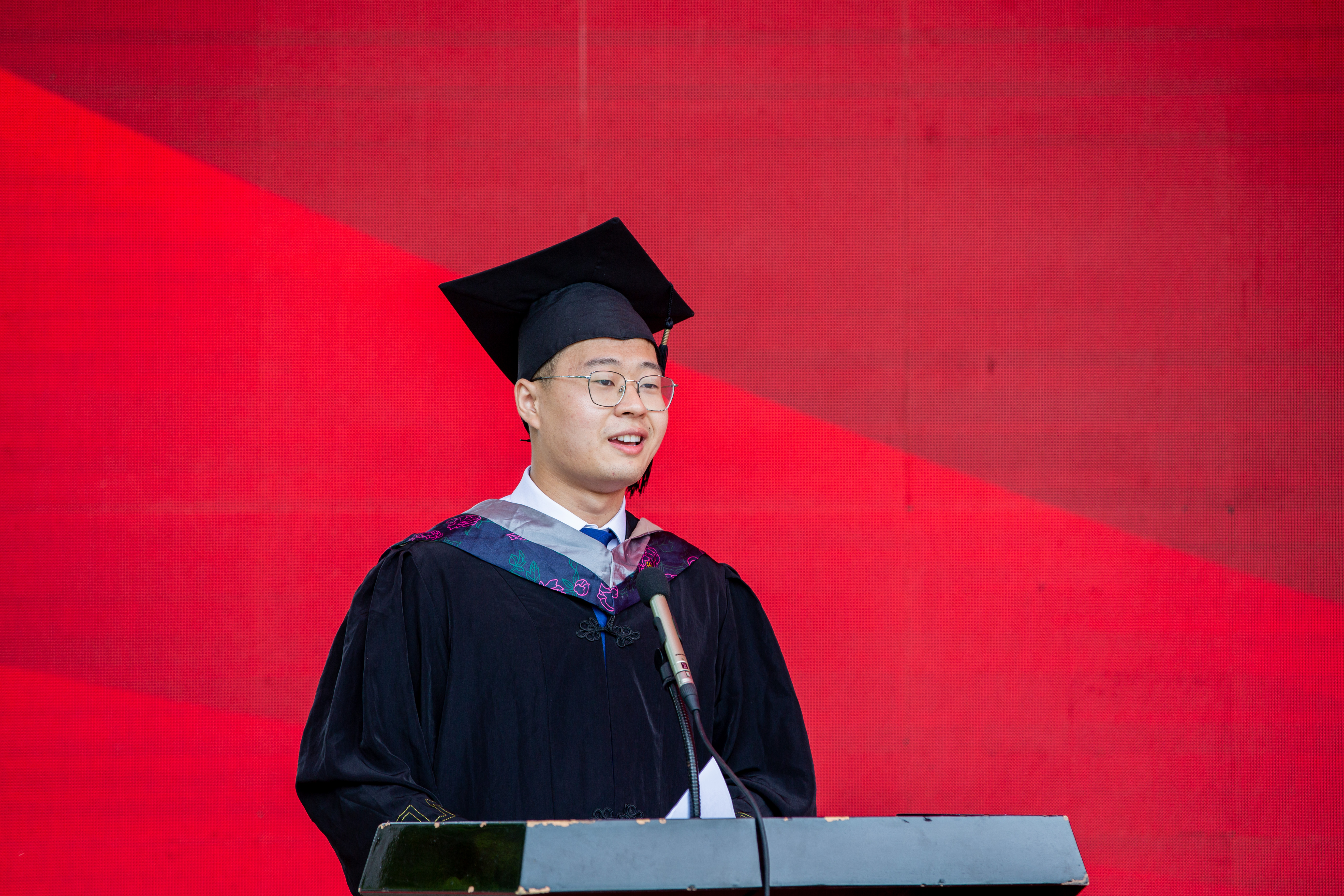 经理卢革宇教授以“坚守与变通”为题寄语毕业生。首先对全体毕业生表示热烈的祝贺,对校园封闭管理期间大家直面困难、勇于担当、积极参与志愿服务工作给予了高度的赞扬。在临行之际,卢革宇教授对毕业生提出三个“坚守”和三个“变通”。一是坚守初心使命,不忘家国情怀。在实现中华民族伟大复兴的事业中彰显智慧、提出方案、贡献力量,做无悔的奋斗者、参与者、实践者。二是坚守理想道德,不落污垢凡尘。要明大德、守公德、严私德,用行动去弘扬正义、展示善良,做社会文明进步的推动者。三是坚守脚踏实地,不染虚狂浮躁。做人做事要放长眼量,厚积薄发,走稳人生每一步。变通革弊,与时宜之。一是希望毕业生们与时俱进,在从事领域发展中学会变通。瞄准世界前沿、面向国家需求,奋力求变,坚持创新,为第二个百年目标的圆满完成提供科技支撑。二是希望毕业生们顺势而为,在职业人生道路上学会变通。尽早融入新环境、取得新成绩;如觉得无法适应,及时变通、再做选择,重新寻觅自己喜欢、擅长并能实现梦想的职业。三是希望毕业生们协同合作,在与人交往共事中学会变通。与人相处贵在真诚,学会为他人着想、遇事谦让、妥协变通,需众志成城、协同攻关才能无往而不胜。