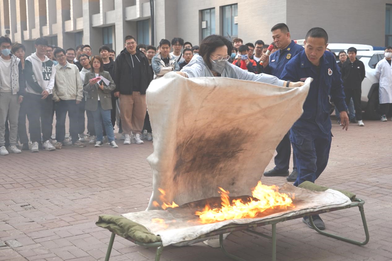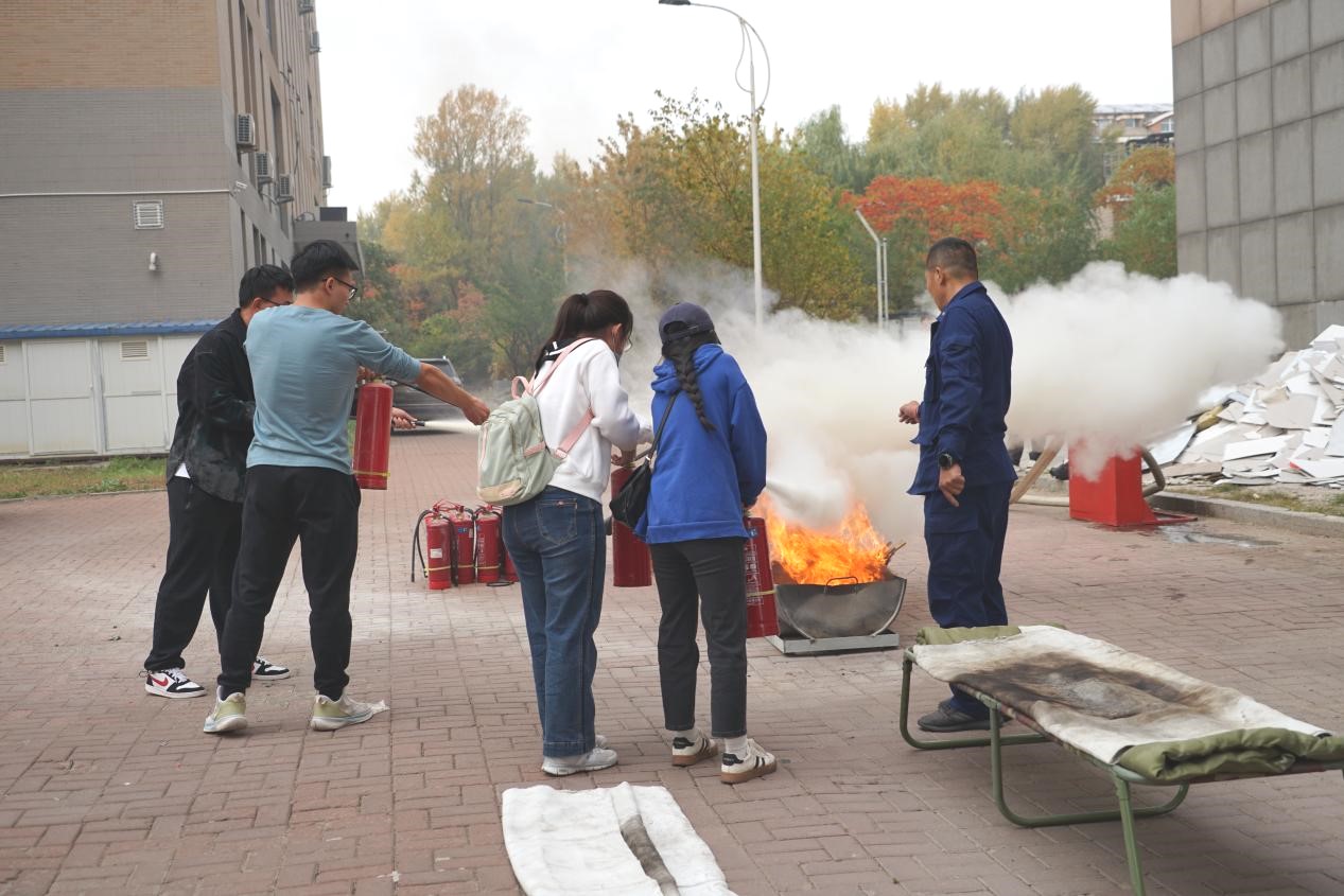 讲座结束后,公司组织了消防应急疏散和扑灭初起火灾演练活动。全体师生在保卫处人员的引导下,手捂口鼻、弯下腰迅速有序地从指定楼梯和安全出口逃生,撤离到楼外的安全地带。随后,保卫处同志详细讲解了灭火毯和各种常见灭火器材的正确使用方法,并指导师生亲手操作灭火毯和灭火器进行了初起火灾的扑灭演练。整个活动秩序井然,并取得了圆满的成功。