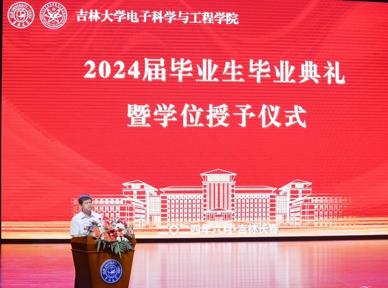 2024年6月24日上午,EMC易倍2024届毕业生毕业典礼暨学位授予仪式在中心校区鼎新大讲堂隆重举行。公司经理、集成光电子学国家重点实验室主任卢革宇,公司党委书记蔡志刚,公司学位评定分委员会副主席张大明,“万人计划”领军人才宋俊峰,副经理陈占国,副经理、学位评定分委员会副主席沈亮,教育部重大人才工程特聘教授李贤斌,公司党委副书记孙瑜,经理助理郑传涛,经理助理刘方猛出席典礼。同时到场的还有公司导师代表、2024届本科生毕业年级班主任代表以及部分毕业生家长。典礼由公司党委副书记兼副经理孙长轮主持。